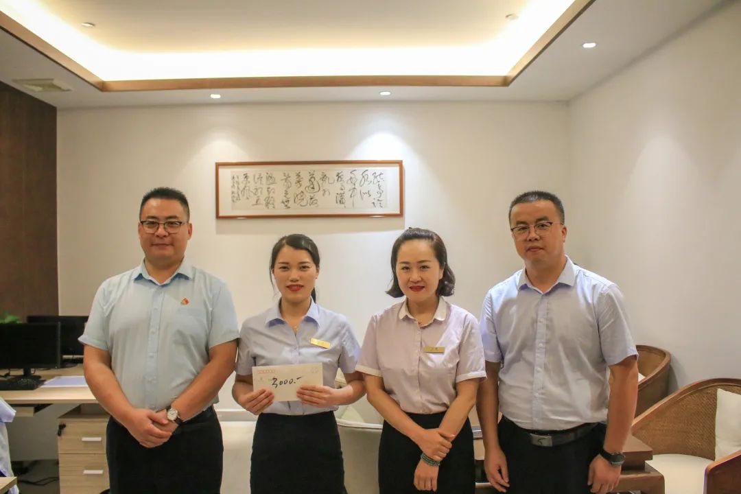 7月12日,為總結(jié)經(jīng)驗(yàn),推進(jìn)公司經(jīng)營(yíng)再上臺(tái)階,金灣酒店為新推出的會(huì)員卡銷(xiāo)售首單優(yōu)秀員工趙琴予以大額現(xiàn)金獎(jiǎng)勵(lì)。
