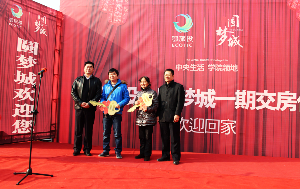 12月31日,“入住美好家園,開啟夢想生活”,鄂旅投•圓夢城一期交房儀式在小區(qū)廣場隆眾舉辦。在洋溢著喜慶、歡樂的氛圍中,部分業(yè)主、洪旅集團公司領導及武漢合利物業(yè)管理公司領導、新聞媒體、業(yè)主代表等百余人參加了本次交房盛會。