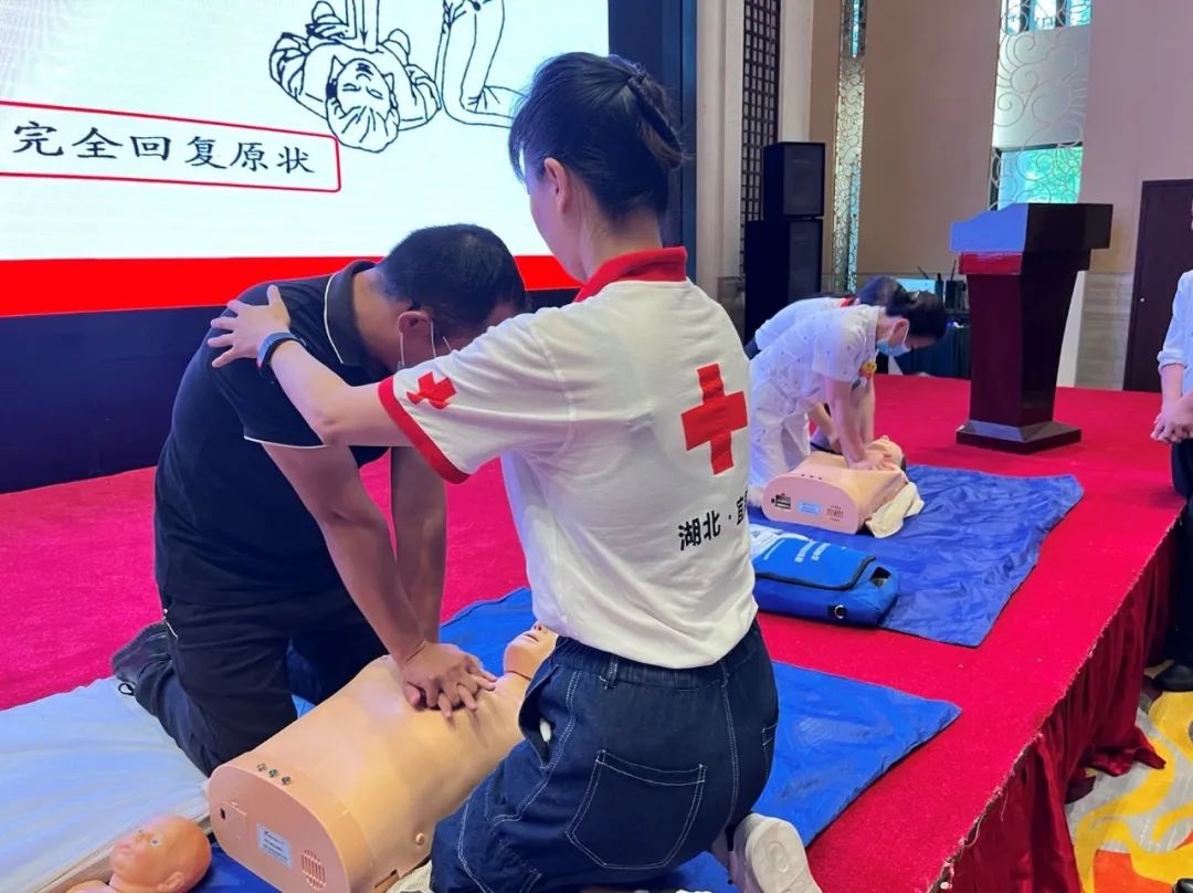 7月6日上午,半島溫泉公司聯(lián)合洪湖市紅十字會,在洪湖廳開展2022年應急救護知識及實操專場培訓,公司90余人參加了此次培訓。