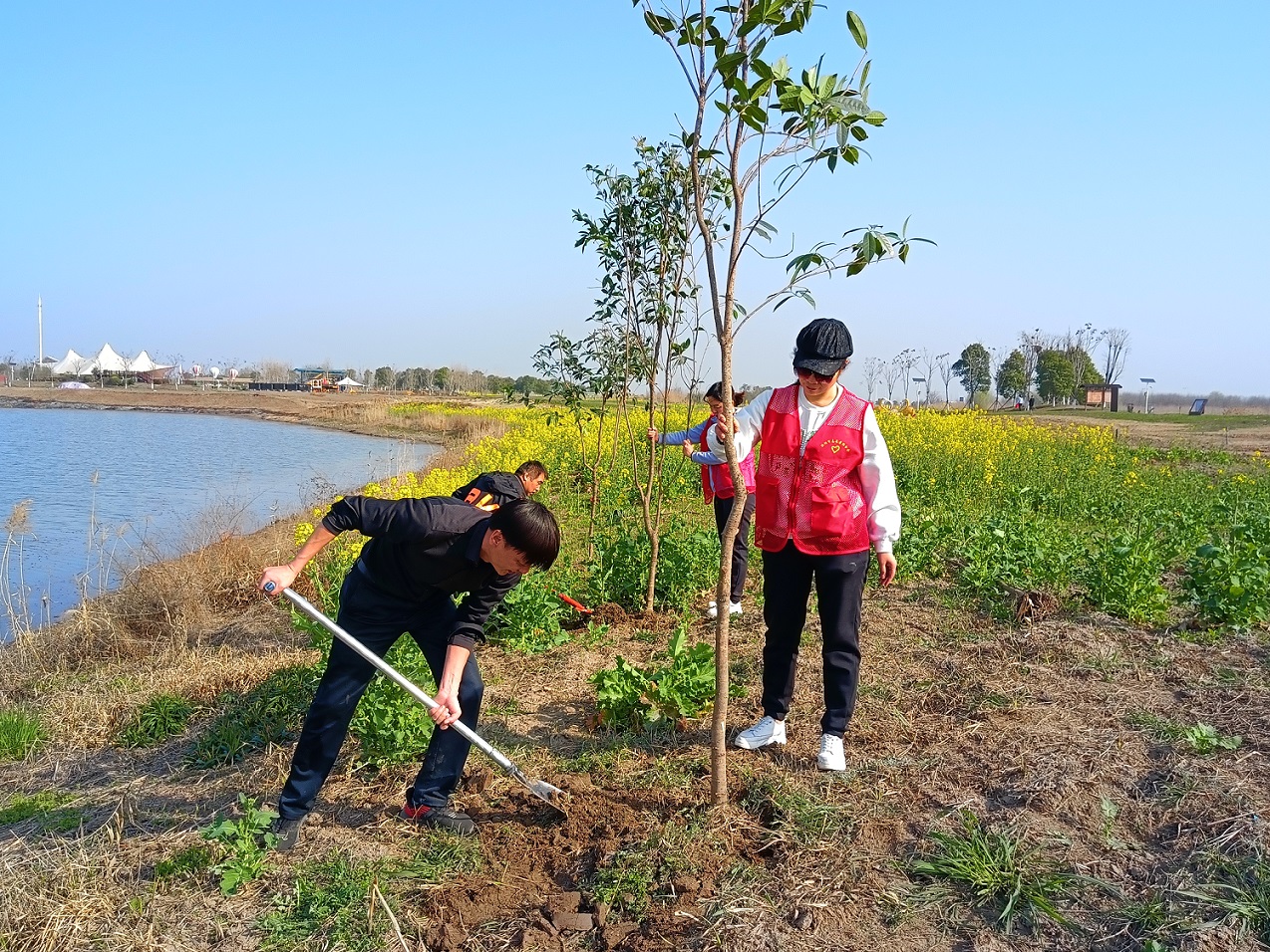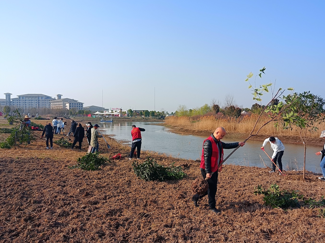 一襲紅馬甲,一顆火熱心?;顒?dòng)中,志愿者們身著紅馬甲,活躍在紅色經(jīng)典體驗(yàn)項(xiàng)目“穿越蘆葦蕩”河道沿岸,形成了一抹亮眼的“志愿紅”。在大家的團(tuán)結(jié)協(xié)作下,將濕地生態(tài)園150余顆樟樹進(jìn)行了移栽。