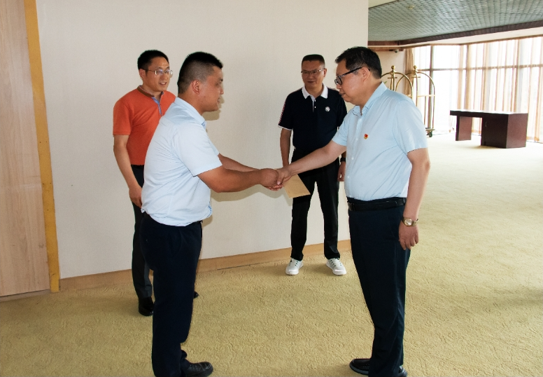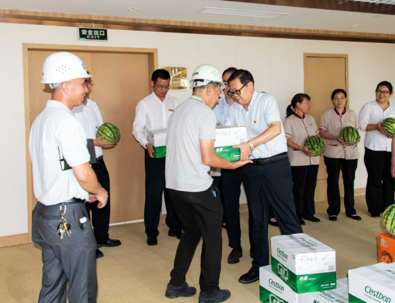 隨后,吳傳彪一行查看了酒店客房維修及餐廳改造情況,與現(xiàn)場工作人員親切交流,并為一線員工送去礦泉水、西瓜等防暑降溫物資,叮囑他們在高溫天氣下要注意休息、勞逸結(jié)合。