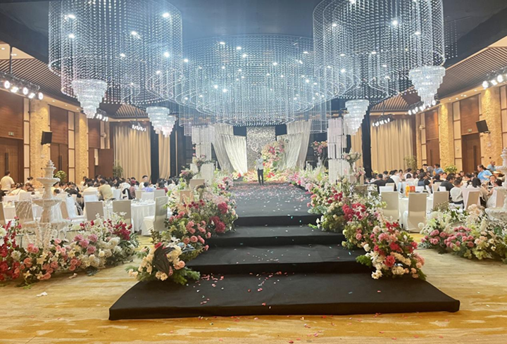 國慶期間,金灣酒店張燈結(jié)彩,處處洋溢著喜慶的氛圍。華麗的宴會廳被精心布置成一個個夢幻的婚禮殿堂,璀璨的燈光、嬌艷的鮮花、精美的裝飾,無一不展現(xiàn)著酒店對每一場婚宴的用心與專注。