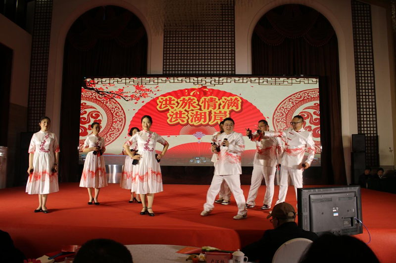 (圖為洪旅集團(tuán)表演的快板《“洪旅”情滿洪湖岸》)