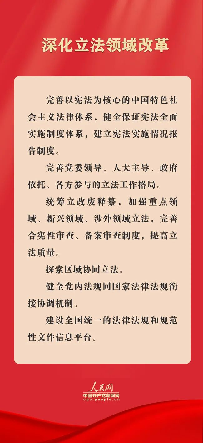 7月21日,《中共中央關(guān)于進(jìn)一步全面深化改革、推進(jìn)中國式現(xiàn)代化的決定》(以下簡稱《決定》)全文發(fā)布。其中對完善中國特色社會主義法治體系作出部署,重點(diǎn)圍繞深化立法領(lǐng)域改革、深入推進(jìn)依法行政、健全公正執(zhí)法司法體制機(jī)制、完善推進(jìn)法治社會建設(shè)機(jī)制、加強(qiáng)涉外法治建設(shè)等方面,提出了法治領(lǐng)域改革任務(wù)要求。